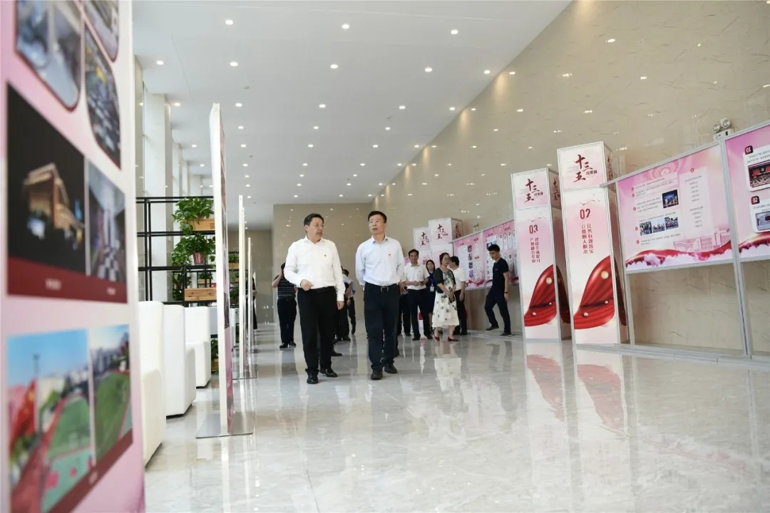 在全体领导和交校师生代表的见证下,金凌副厅长与李虎书记一起为党的光辉历程展、“红船”模型、“十三五”发展成果展揭牌。