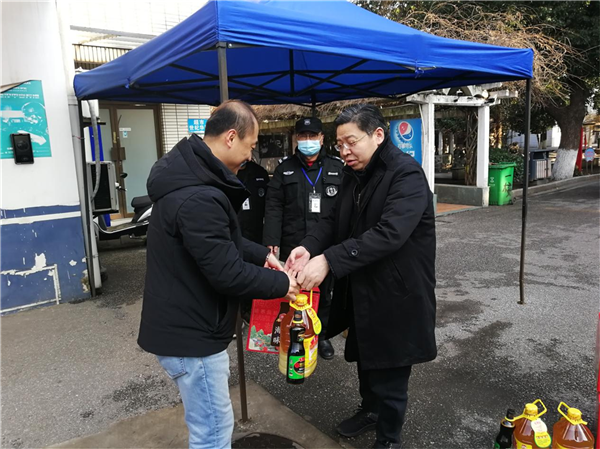 李书记一行先后走访了门岗、教学楼等处。每到一处,都向大家送上新年祝福和节日“慰问品”,感谢他们为保障平安校园而付出劳动和默默奉献,叮嘱大家“注意保暖”。