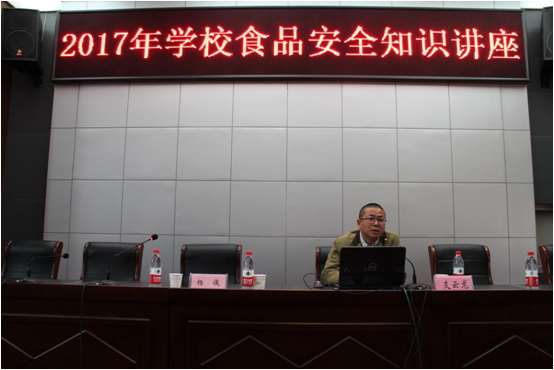 4月15日下午,后勤服务中心为提高师生的就餐保障,特邀滨湖区工商局食品监督科,支云龙专家来校《餐饮食品安全知识》授课,参加部门:膳食委员会成员、学生代表、各餐饮公司员工。