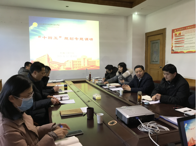 会上,机械工程学院汇报了学院“十三五”期间所取得的成绩、存在的主要问题,从党建工作、师资建设、专业建设等方面对“十四五”规划编制作了详细的汇报。参加调研的其他院部领导、二级机构负责人、相关老师作了发言交流。教务处、学工处等职能部门领导对机械工程学院“十四五”规划提出建议和意见。