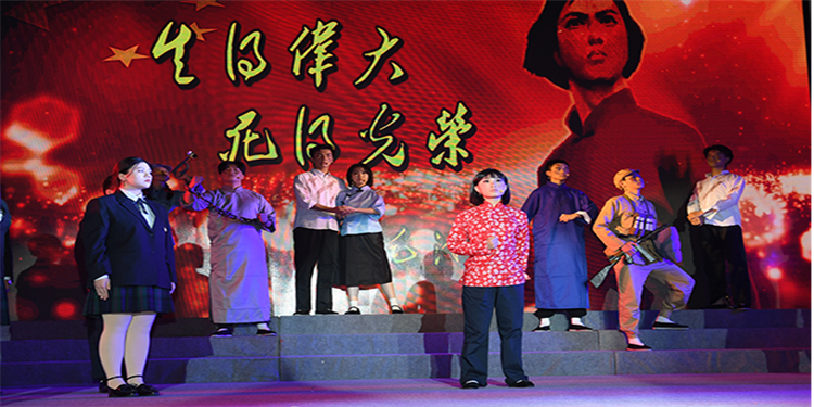 我校师生生动地演绎了刘胡兰、夏明翰、董存瑞、何敬平等革命烈士的英雄形象,带领观众一起重温那段惊心动魄的历史,追忆那段血雨腥风的艰苦岁月,悼念我们的革命先烈,缅怀他们的丰功伟绩,激发强烈的爱国热情。各位“烈士”用铿锵有力的声音诠释共产党人信仰的力量,表达对革命先烈最崇高的敬意。