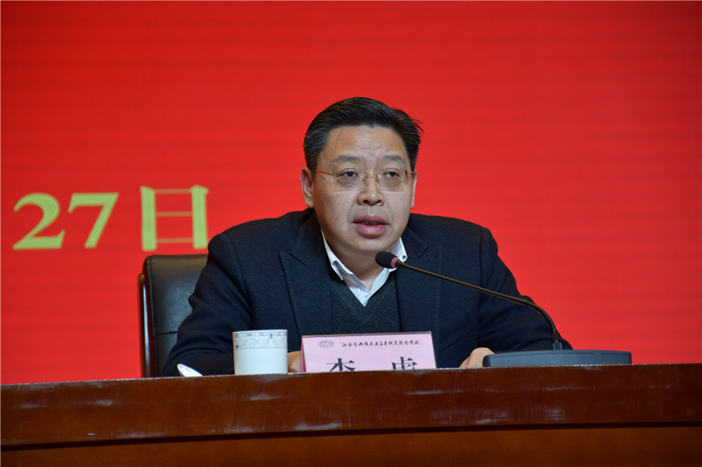 为深入推进全面从严治党向纵深发展,保障学校高质量发展进入新阶段开好局、起好步,2月27日下午,学校召开2021年党风廉政建设暨师德师风建设工作会议。学校党委书记、校长李虎出席会议并讲话,全体校领导、全体教职工参加了会议。会议由校党委委员、副校长耿兴华主持。