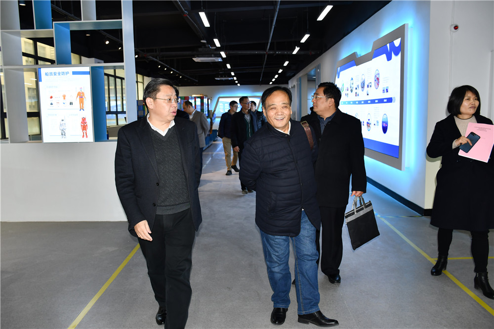 会后,辛望旦会长及王剑飚主任一行在李书记的陪同下,参观了学校焊接实训基地与船文化中心。