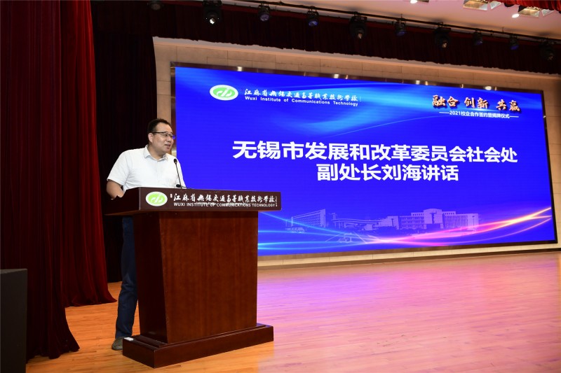 无锡市发改委社会处副处长刘海在发言中强调,此次校企合作签约是企业、学校、学生乃至社会共赢的重要举措,标志着校企双方在合作办学方面迈出了坚实的一步。他希望通过搭建合作平台,培养更多符合无锡市产业发展需求的高技术技能人才。