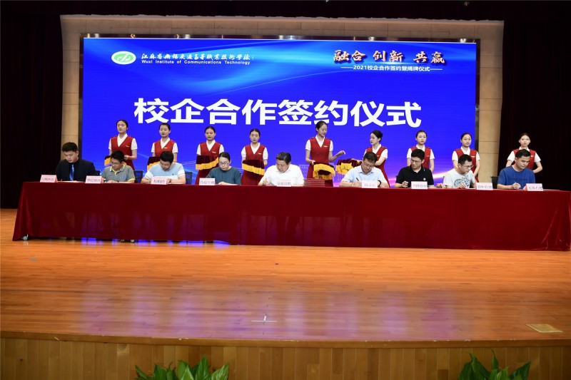 6月10日,学校在致远楼大礼堂举行了与江苏扬子江船业集团公司、约克(无锡)空调冷冻设备有限公司、苏州棕榈湾文旅发展有限公司、无锡市兴隆船舶有限公司、六洲酒店管理(上海)有限公司、华晨新日新能源汽车有限公司、无锡市石油化工设备有限公司、无锡市毅恒工程检测有限公司8家单位的校企合作签约暨揭牌仪式。江苏联合职业技术学院对外合作处副处长刘群,无锡市工业和信息化局产业人才与合作处处长尹清涛,无锡市发展和改革委员会社会处副处长刘海,无锡市教育局高职处副主任王晓忠、无锡市职业技术教育学会副会长虞伟民、无锡市文旅集团鼋头渚景区管理处副主任任刚、学校党委书记、校长李虎,副校长耿兴华和企业代表出席了签约仪式。签约仪式由学校党委副书记、纪委书记朱雨兰主持。