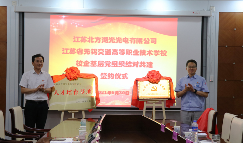 为深入贯彻落实习近平总书记在党史学习教育动员大会上的重要讲话精神,强化党建引领作用,发挥校企双方优势,探索新时代基层党建工作新思路,着力构建校企共建促发展新模式。6月30日,学校机电工程学院党总支与江苏北方湖光光电有限公司人力资源党支部,举行党建结对共建签约仪式,副校长耿兴华、湖光光电公司纪委书记王亚军,以及机电工程学院党总支党员代表、湖光光电有限公司人力资源党支部党员代表共同出席仪式。