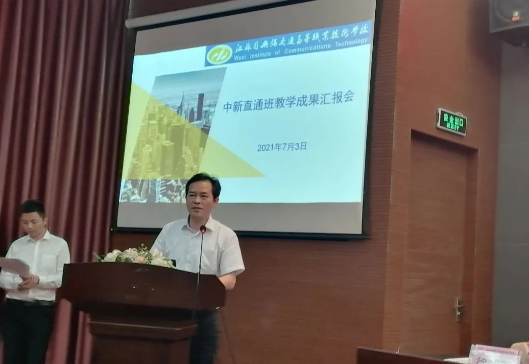 为展示学校道路与桥梁工程技术专业“中新直通班”雅思英语教学成果,7月3日,学校在学术报告厅举办了“中新直通班教学成果汇报会”,会议由“中新合作班”英语教学承办方--万泰教育咨询有限公司国际文化交流中心主持,校党委委员、副校长耿兴华,万泰教育总经理许孜奕出席了成果汇报会。