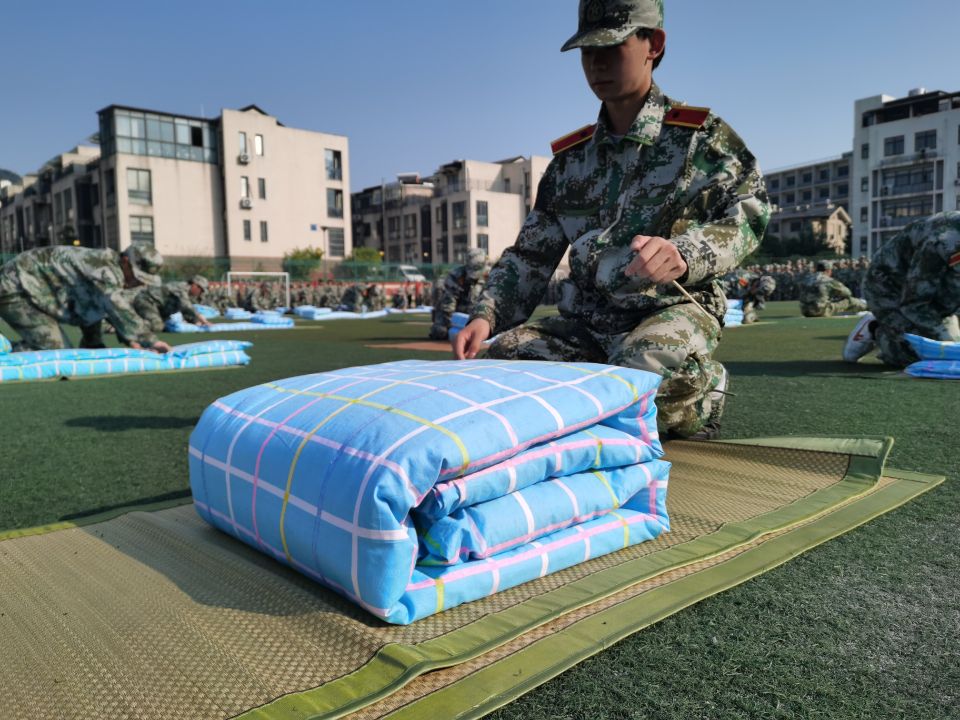 在短短的10分钟时间里,同学们的被子都变成了豆腐块,方方正正、整整齐齐,棱角分明。叠被子是军训内务整理中难度较大的一项内容,在此次活动中,同学们既掌握了叠被子的技巧,也培养了严于律己、一丝不苟的优良作风。相信经过这次技能展示,同学们将会以更加积极进取的心态和雷厉风行的作风投入到接下来的学习生活中去。