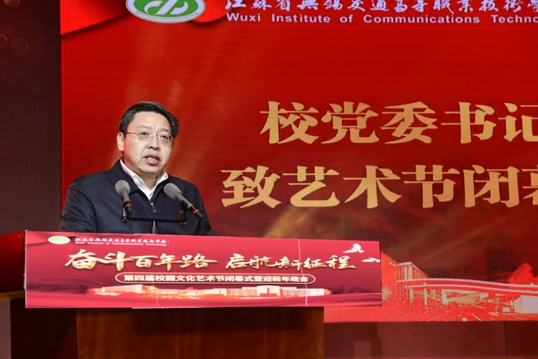 会上,李虎书记致第四届校园文化艺术节闭幕式暨2022年新年贺词。2021年,全校师生把党史学习教育与高质量发展融会贯通,在伟大建党精神的鼓舞下,抢抓机遇,攻坚克难,学校升格已纳入《江苏省“十四五”综合交通运输体系职业教育发展专项规划》和无锡市“十四五”教育规划中,已提请列入省“十四五”高校设置规划,高质量编制学校“十四五”规划,确立“15610”发展战略。他希望全校师生在2022年,要以习近平新时代中国特色社会主义思想为指导,落实立德树人之本,勇担社会服务之责,以高质量发展为主题,以高职院建设为主线,以改革创新为动力,以厅市共建创新发展为抓手,全面开启高职院建设新征程,谱写高质量发展新篇章,以优异成绩迎接党的二十大召开。