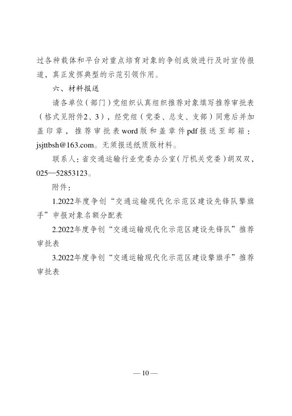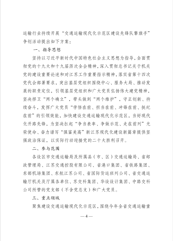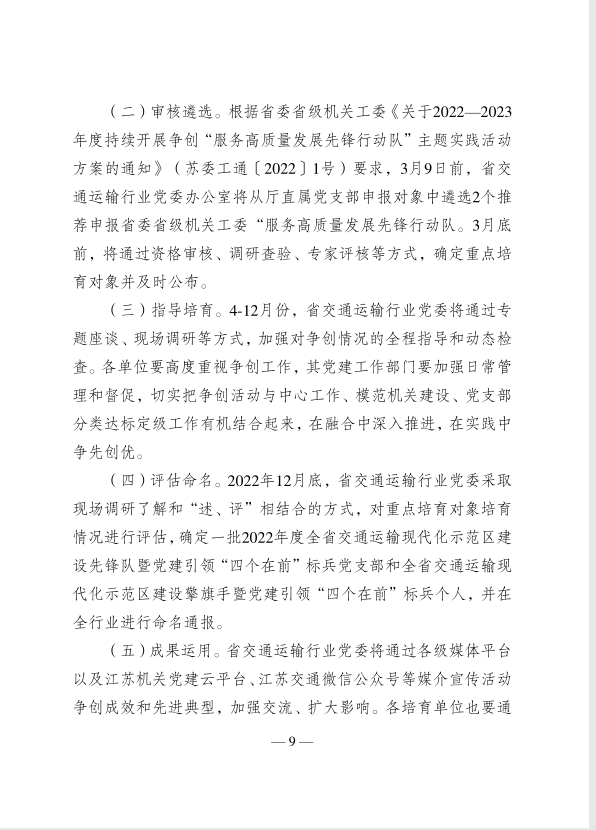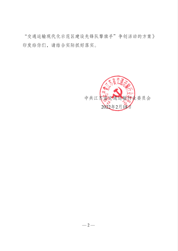 附件:《省交通行业党委印发关于2022年度在全行业持续开展“交通运输现代化示范区建设先锋队擎旗手”争创活动方案的通知》