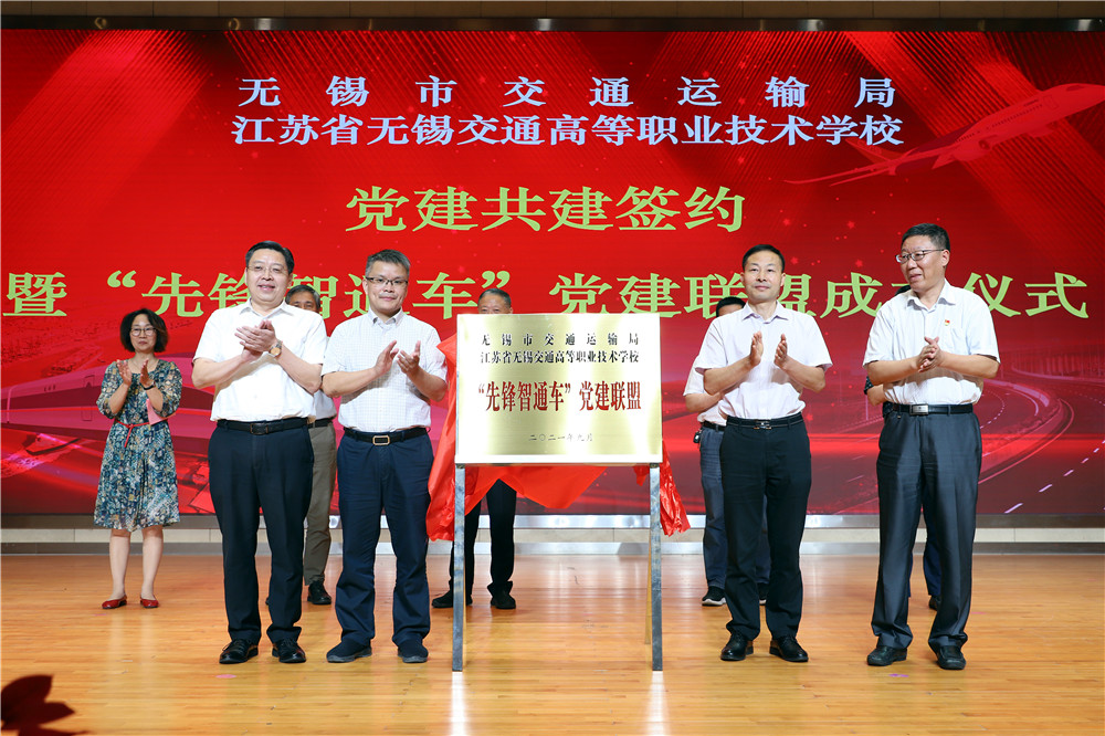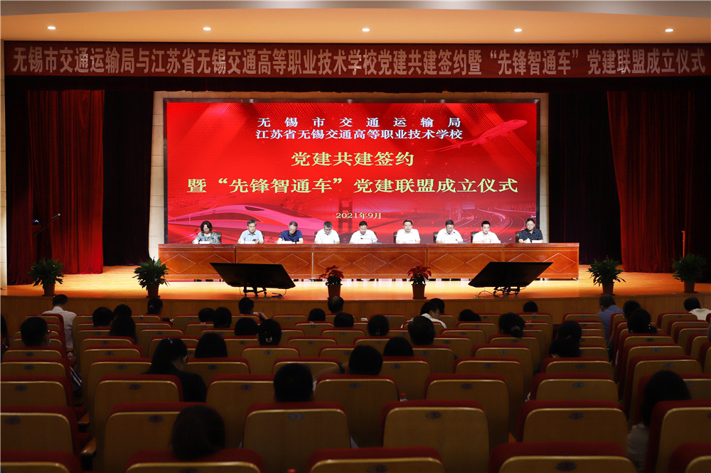 为深入学习贯彻习近平新时代中国特色社会主义思想,深化党史学习教育,落实“两在两同”建新功行动,发挥党建引领促发展作用,9月29日,无锡市交通运输局与无锡交校党建共建签约暨“先锋智通车”党建联盟成立仪式在学校大礼堂举行。江苏省交通运输厅机关党委副处长王子明,无锡市委组织部组织二处处长龚鑫,开云手机客户端党委书记、校长李虎,无锡市交通运输局党委副书记尹南方,副局长丁满琪,调研员宋良栋、周文专,无锡交校副校长倪依纯等出席签约仪式。签约仪式由学校党委副书记朱雨兰主持。