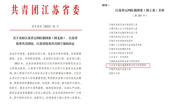 近日,共青团江苏省委作出关于表彰江苏省五四红旗团委(团工委)、江苏省优秀共青团员、江苏省优秀共青团干部的决定。学校团委荣获“江苏省五四红旗团委”称号,这是团省委授予全省基层团组织的最高荣誉。