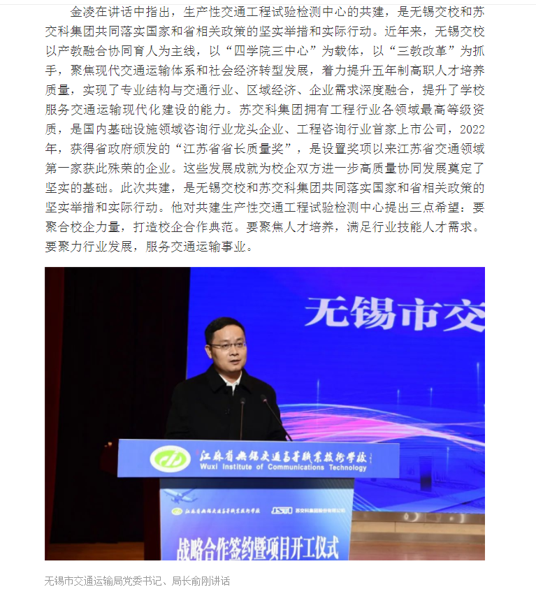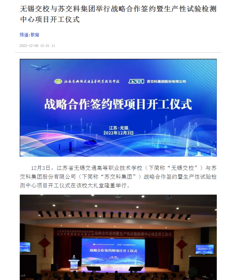 无锡博报:无锡交校与苏交科集团共建生产性交通工程试验检测中心项目正式启动(视频版)