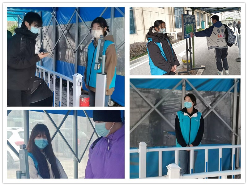 来自船舶工程学院的学生志愿者们穿戴整齐,早早地来到学校门口,认真履行职责,积极热情的为大家服务。督促同学们带好口罩,扫码入校,用灿烂的微笑、诚挚的服务精神为同学们营造了一个温馨和谐的校园环境。