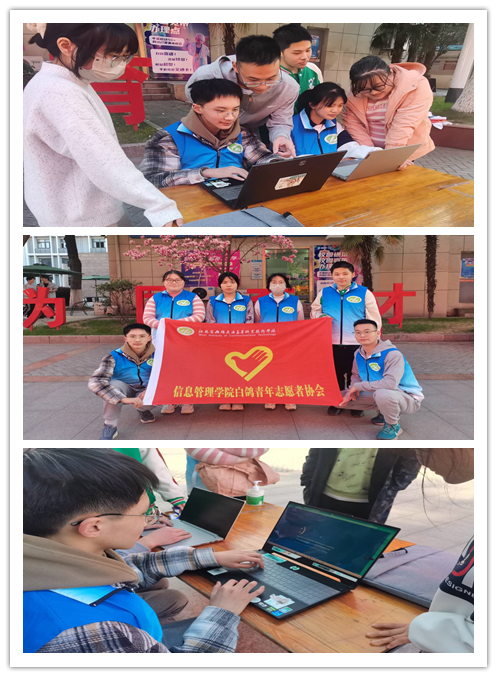 为积极践行雷锋精神,培养同学们乐于助人、甘于奉献的精神品质。3月15日下午,信息管理学院的志愿者们在正德楼楼下,积极发挥专业优势,帮助师生免费维修电脑、重装系统、解答电脑方面的疑问,传承雷锋无私奉献的精神。