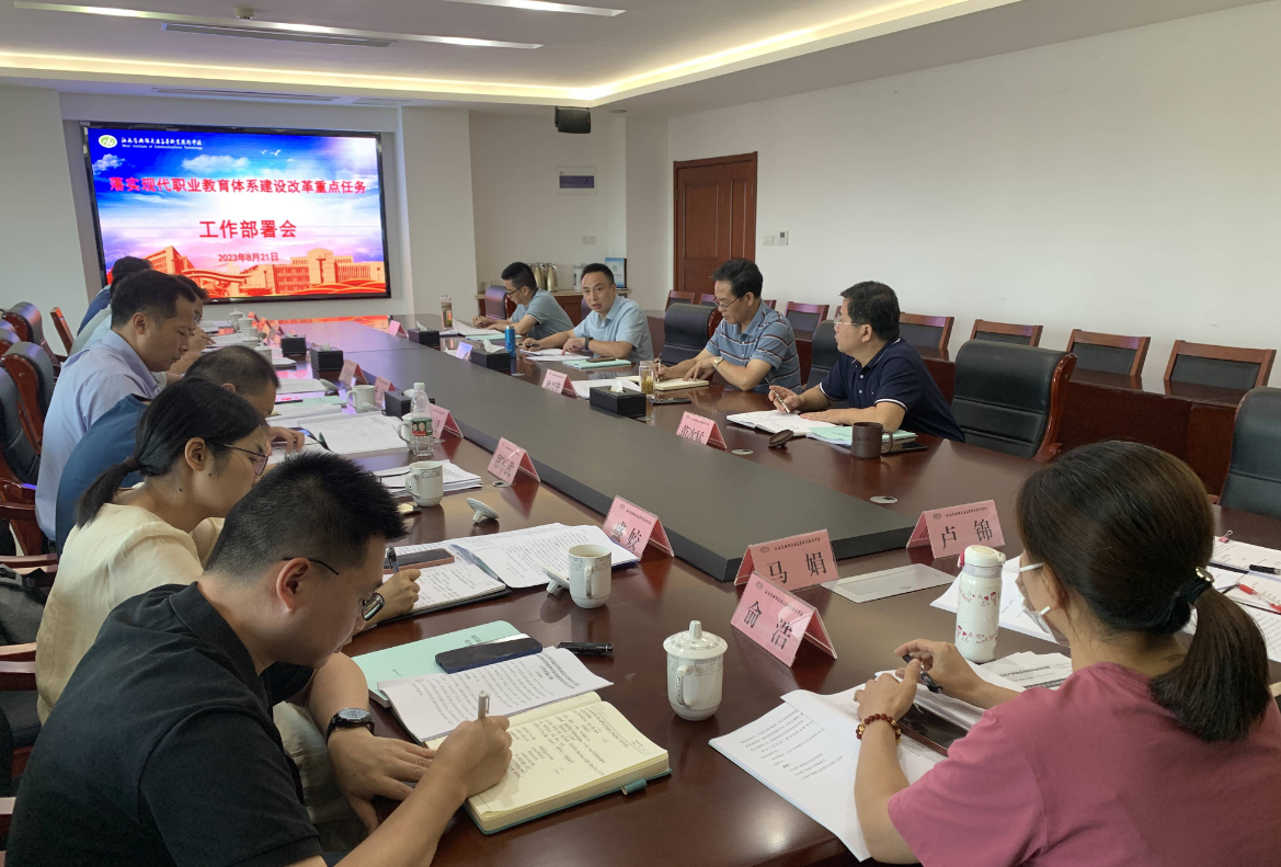 为贯彻落实《中共中央办公厅 国务院办公厅关于深化现代职业教育体系建设改革的意见》《教育部办公厅关于加快推进现代化职业教育体系建设改革重点任务的通知》文件精神,8月21日下午,学校组织召开落实现代职业教育体系建设改革重点任务工作部署会。学校校长、党委书记李进,学校副校长倪依纯、范次猛出席会议,会议由学校副校长耿兴华主持。