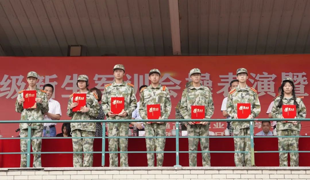 朱雨兰宣读了《关于表彰2023级学生军训先进集体和先进个人的决定》,17个班级荣获“军训内务整理先进集体”荣誉称号,18个班级荣获“军训板报评比先进集体”荣誉称号,18个班级荣获“军训军歌比赛先进集体”荣誉称号,20个班级荣获“军训队列评比先进集体”荣誉称号,李绍华等186名同学荣获“军训先进个人”荣誉称号。全体校领导为先进集体和先进个人颁发荣誉证书。