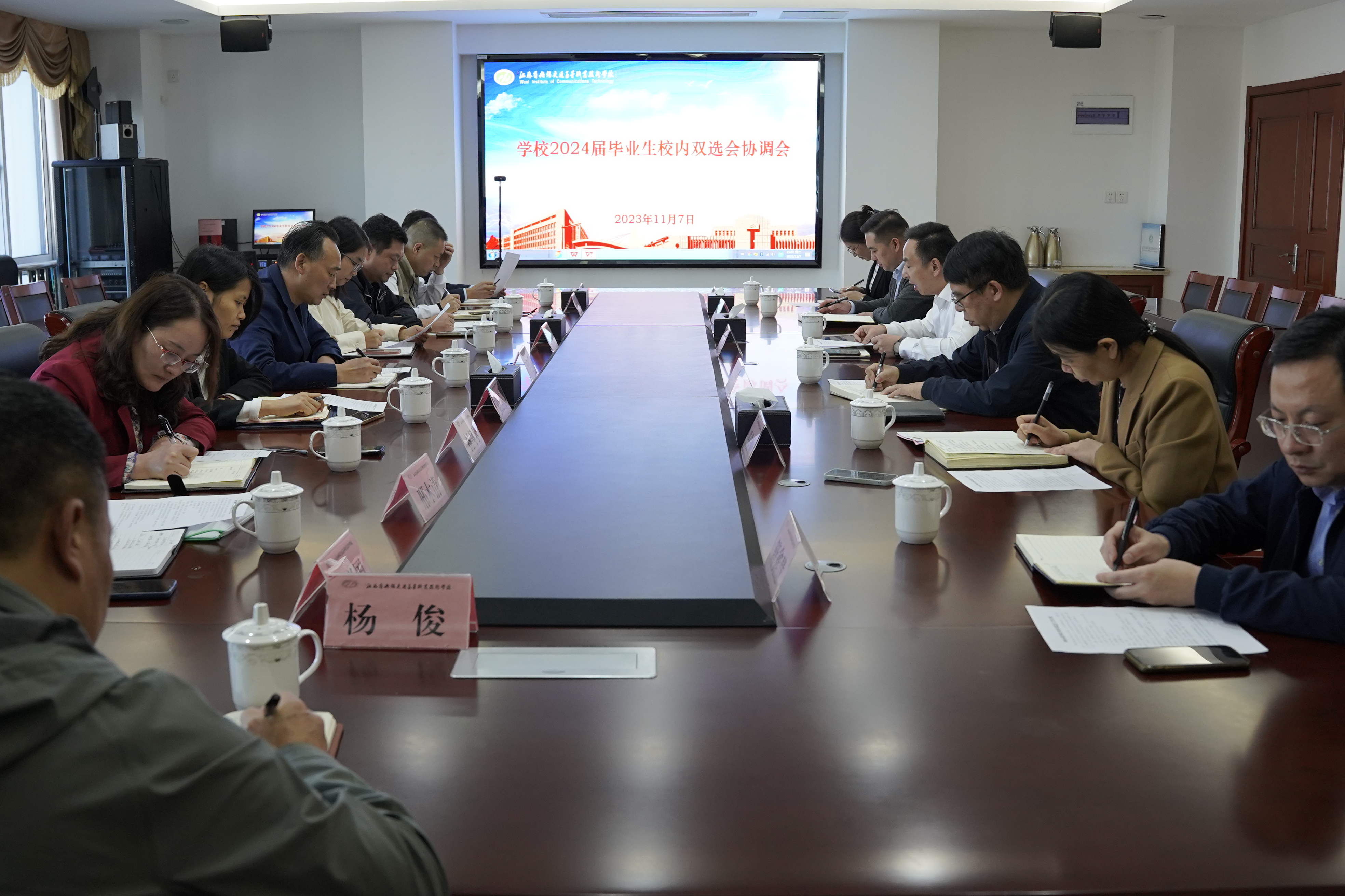 会上,招生就业处介绍了学校举办校园双选会的筹备情况,并对相关职能部门承担的工作任务做了分解安排。各部门、学院就校园双选会综合协调、会场布置、安全保障、宣传报道、单位邀请等具体工作进行了协商讨论。