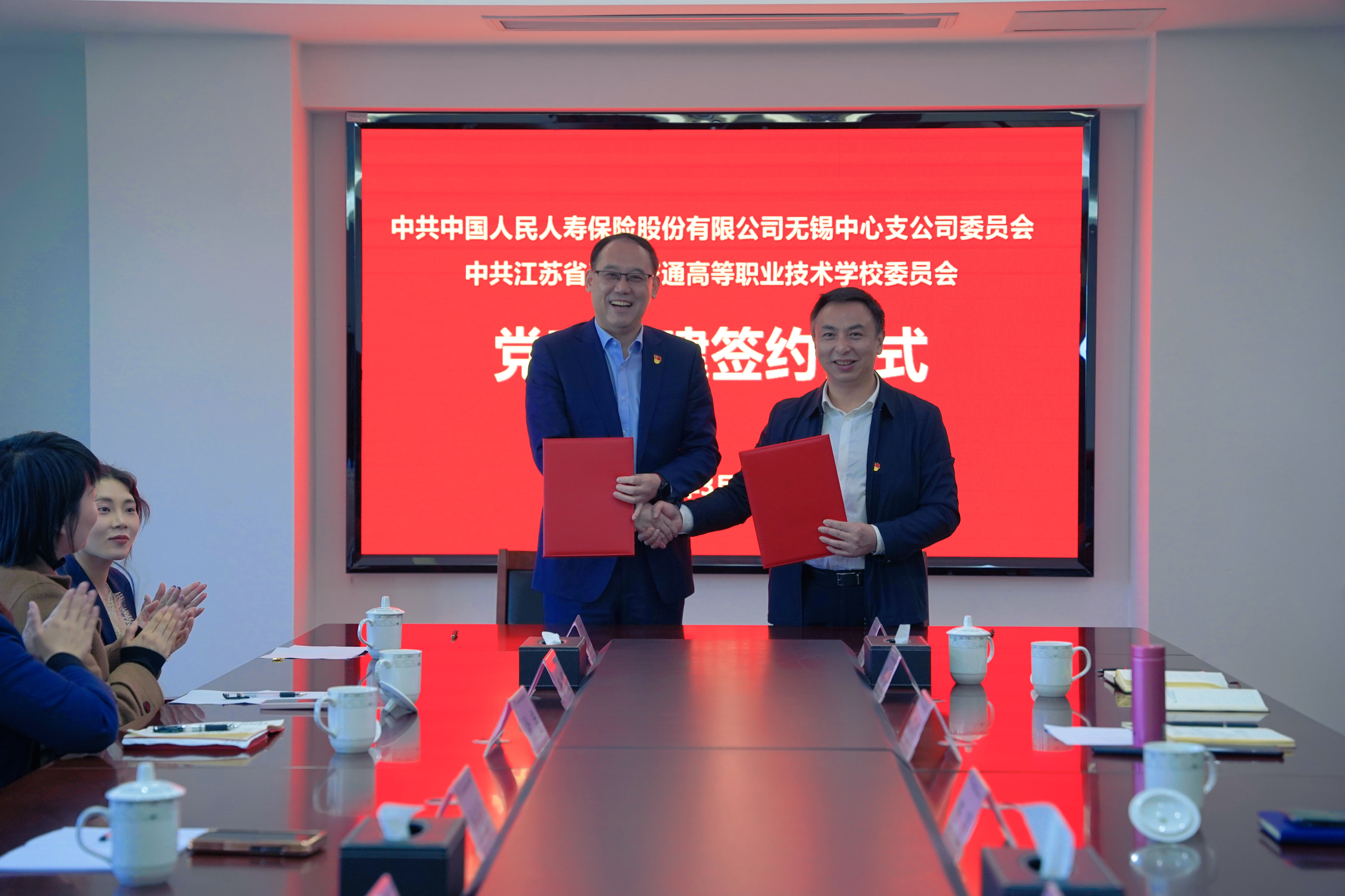 为深入学习贯彻习近平新时代中国特色社会主义思想,全面贯彻落实党的二十大精神,进一步巩固主题教育成果,激发党建活力,推动党建引领发展。3月12日下午,学校与中国人民人寿保险股份有限公司无锡中心支公司举行党建共建签约仪式。人保寿险无锡公司党委书记、总经理李光仁,学校党委书记、校长李进等出席签约仪式。