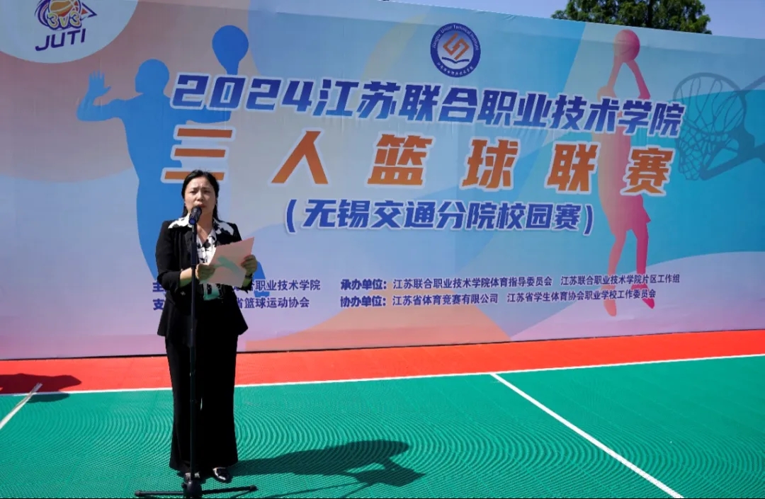 5月29日下午,2024江苏联合职业技术学院三人篮球联赛无锡交通分院校园赛在钱荣校区篮球场火热开赛。学校党委委员、副校长耿兴华,学校职能部门、二级院部负责人,各代表队领队、教练员、运动员以及部分师生参加活动。开幕式由学校党委委员、副校长吴雪琴主持。