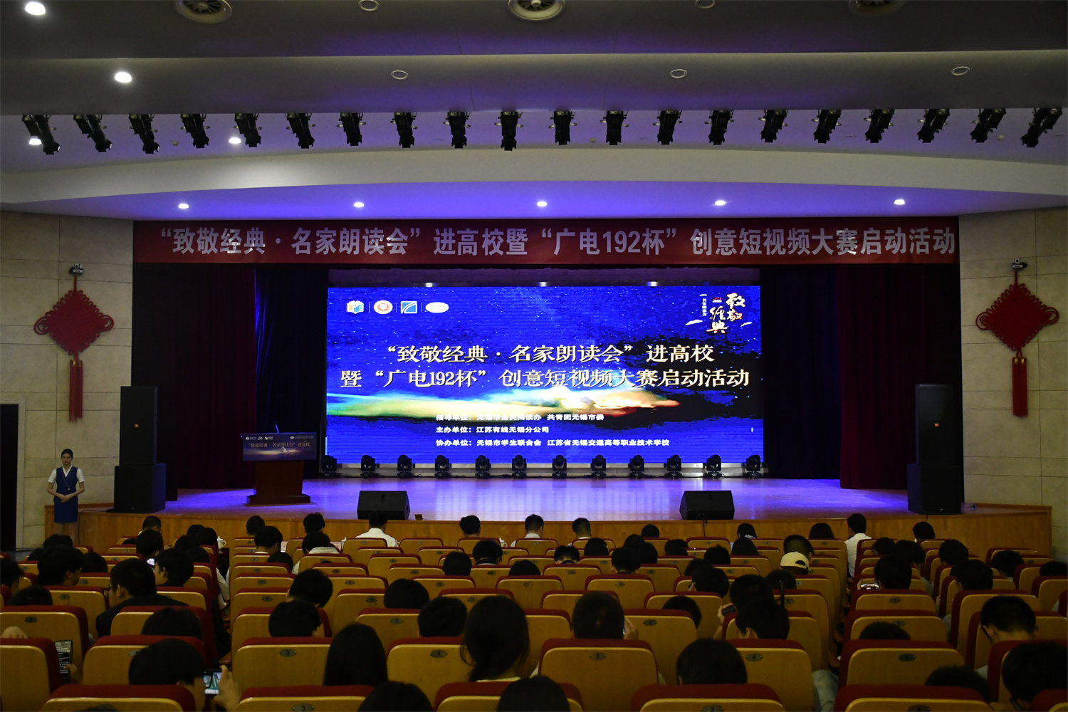 6月5日下午,一场别开生面的文化盛宴在学校大礼堂拉开帷幕。由江苏有线无锡分公司主办,无锡市学生联合会、开云手机客户端联合承办的“致敬经典·名家朗读会”进高校暨“广电192杯”创意短视频大赛启动活动在此成功举办。无锡市委宣传部出版印刷发行处副处长冯健,共青团无锡市委学少部副部长王裔,江苏有线无锡分公司党委委员、副总经理赵晓光,校党委委员、副校长耿兴华、王珏及在锡高校领导代表、江苏有线无锡分公司代表、我校师生代表600余人共同参加了本次活动。