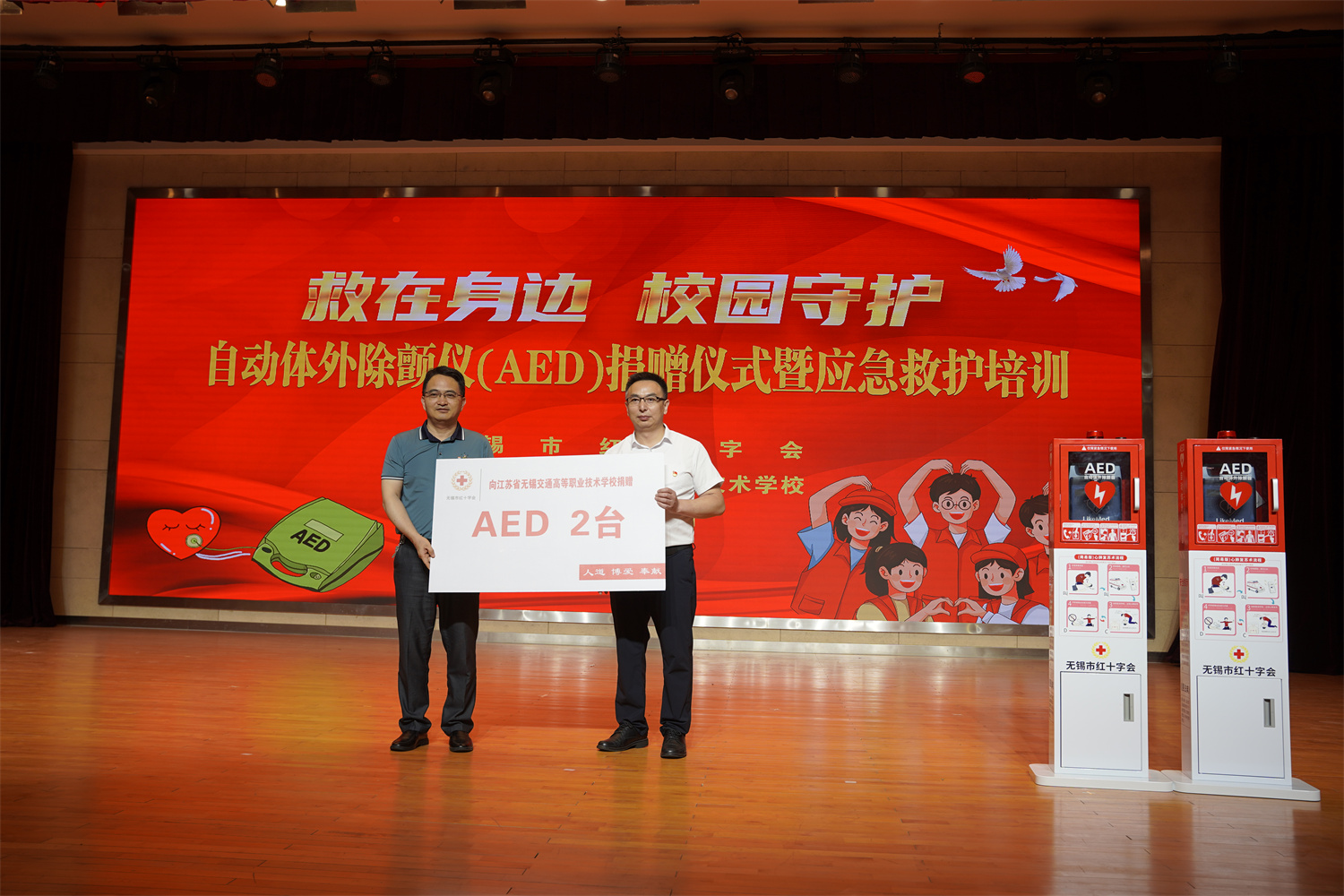 AED是可被非专业人员使用的用于抢救心搏骤停患者的医疗设备。此次,无锡市红十字会向我校捐赠2台AED设备,用于支持校园紧急救护,完善校园急救设施,有力保障了师生安全。