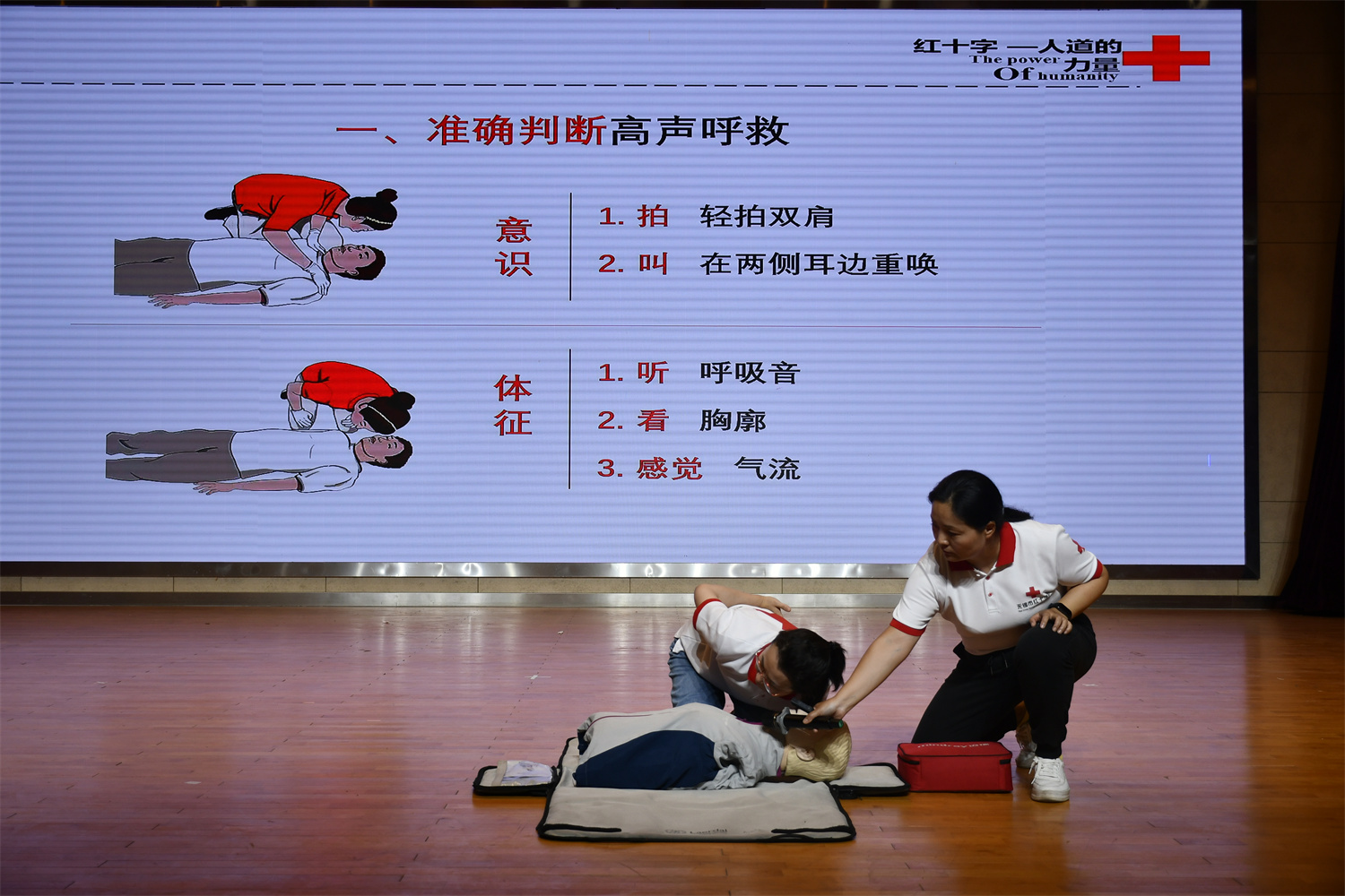 仪式结束后,周彬一行参观了学校交通运输物联网技术实训基地、江苏交通运输行业船文化中心等。无锡市红十字会救护师为600余名师生开展了应急救护培训,讲解心肺复苏、气道梗阻的操作过程以及AED的操作流程。通过培训有效增强了师生应急救护意识和自救互救能力。