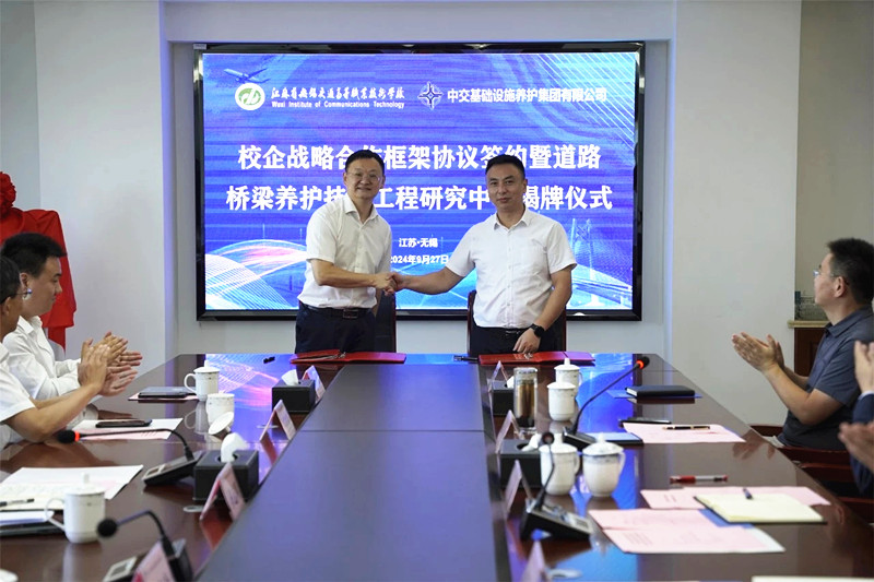 9月27日,学校与中交基础设施养护集团有限公司战略合作框架协议签约暨道路桥梁养护技术工程研究中心揭牌仪式在512会议室举行。