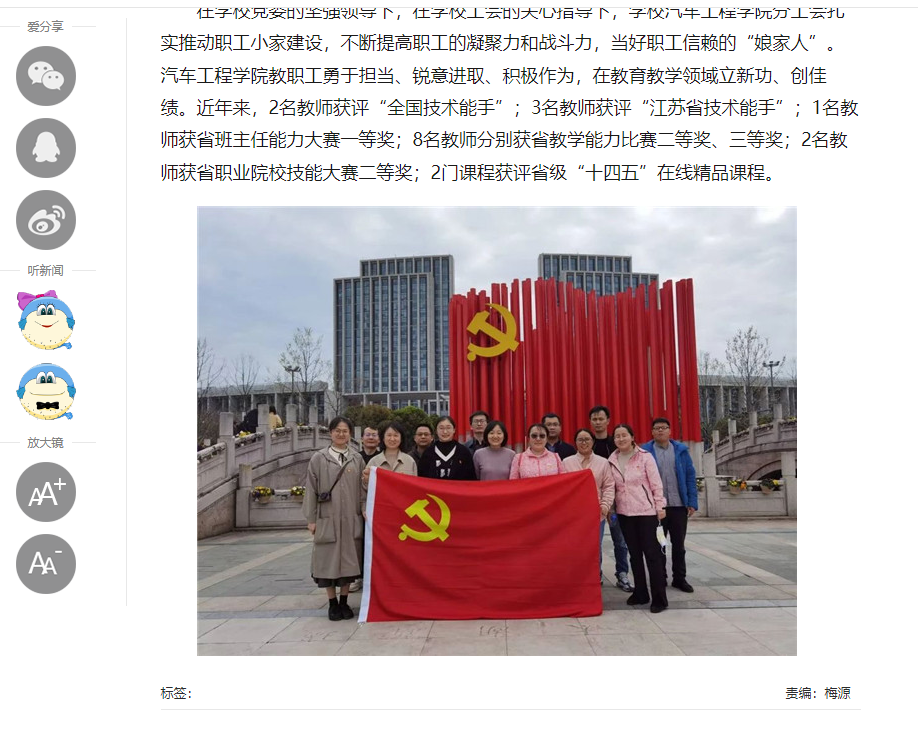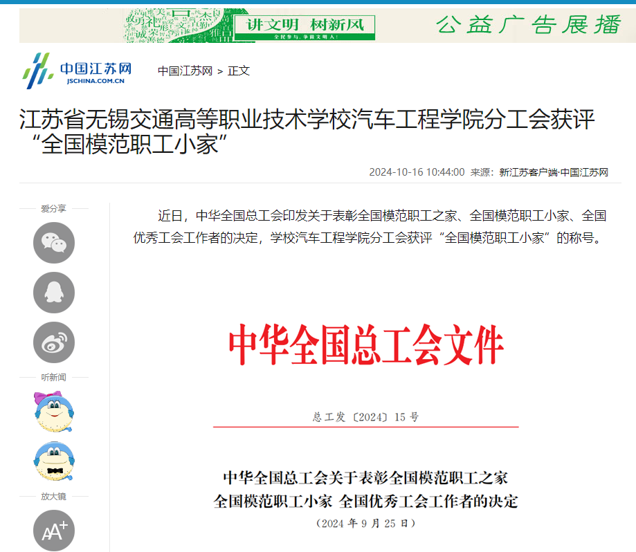 中江网:开云手机客户端汽车工程学院分工会获评“全国模范职工小家”