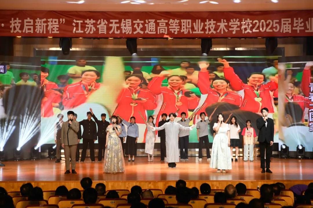 典礼过程精彩纷呈,充分展现了交校学子的技能风采与青春活力。活力四射的花球啦啦操《炫彩跃动》点燃现场气氛;刚柔并济的武术表演《太极之韵 青春华彩》诠释了中华传统体育文化的魅力;优美典雅的古典舞《云销雨霁》与充满时代气息的现代舞《舞悦青春》则展示了学子们多元的艺术修养;由国学堂社团呈现的音诗画《有我》,更是以艺术形式表达了青年一代的担当与抱负。《毕业祝福视频》汇集了来自四面八方的深情祝福,温暖了每一位毕业生的心田。