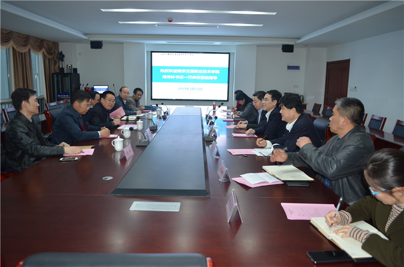 3月21日,南京交通职业技术学院党委副书记周传林,党委委员、党委宣传部部长、发展规划处处长周剑康一行莅临我校考察交流。校党委书记李虎,校长陆春其参与了座谈交流。