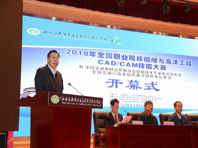 11月17日上午,由全国船舶工业职业教育教学指导委员会主办,开云手机客户端承办的全国职业院校船舶与海洋工程CAD/CAM技能大赛以及我校承办的2018年中国交通教育研究会船舶技术专业委员会年会、全国交通行指委船检教学协作中心年会开幕式在学校大礼堂隆重举行。开幕式由陆春其校长主持,省交通运输厅副厅长金凌出席开幕式并讲话,校党委书记李虎致欢迎辞。