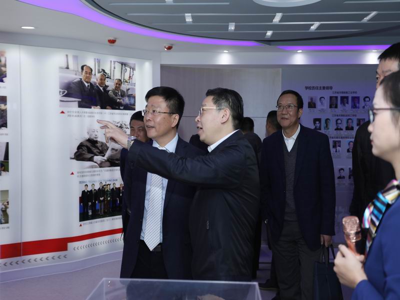 学校党委书记李虎汇报了校史馆、办学成果展、师生校友书画展的筹建情况。学校校史馆占地300平米,分为三大部分:一是世纪追溯、甲子回眸,二是教书育人、硕果芬芳,三是薪火相传、续创辉煌。学校利用校史馆周边100米走廊筹建了办学成果展,利用职工之家开展师生校友书画展活动。