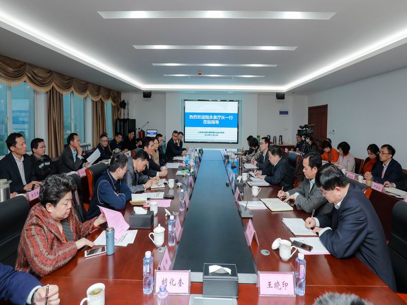 11月11日上午,江苏省交通运输厅厅长、党组书记兼省铁路办主任陆永泉一行莅临省无锡交校,调研学校建设发展情况。江苏省交通运输厅副巡视员、机关党委书记陈萍、无锡市交通运输局党委书记、局长夏正兴、厅办公室主任侯建宇、厅政治处处长张欣、厅综合计划处处长凌耀初、厅财务处处长朱芹、厅机关党委副书记、纪委书记周体光、厅办公室副主任赵钢、厅政研室副调研员胡化奎、厅政治处副主任科员王晓印陪同调研。