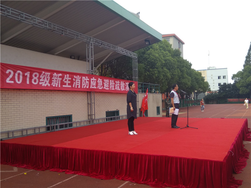 9月29日下午14:30,学校2018级新生消防应急疏散演练在一阵犀利的警报声中开始了。指挥组、通讯组、医务组、应急组的相关人员立即就位。同学们毛巾捂口鼻、弯腰躬行、迅速撤离,教师们在教师通道疏导、哨声引导,操场集结、清点人数,全体师生将一个个逃生技术环节做的一丝不苟,严肃认真。