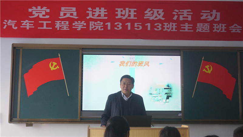 为深入学习宣传贯彻党的十九大精神,落实“两学一做”学习教育制度化、常态化,进一步深化全校“干部大走访,党员进班级”主题实践活动,11月15日下午,校党委书记李虎来到锡澄校区汽车工程学院131513班,参加主题班会,和同学们畅谈职业规划,讨论新时代青年未来发展。