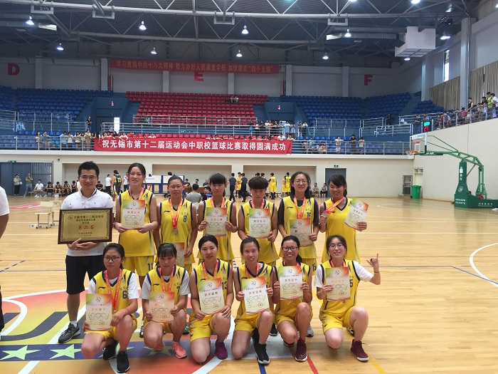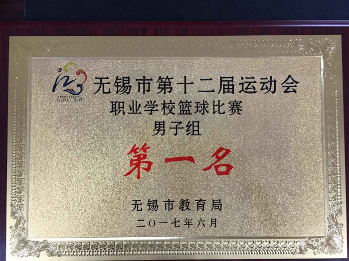 2017年无锡市第十二届运动会职业学校篮球比赛于6月17日中午在无锡高等师范学校体育馆落下帷幕,共24名男女运动员代表我校分别参加男、女组的比赛。经过4天的激烈角逐,我校男子篮球队勇夺冠军,女子篮球队首次参赛便斩获亚军。校长陆春其、副校长邢勇以及基础部相关领导现场观战,给予了篮球队巨大的激励和支持。