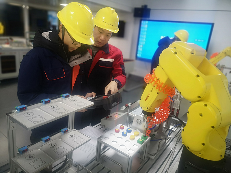 2020、2021两年暑假,支部党员陈经纬、陆畅都能冒着酷暑参加了工业机器人1+X证书师资、考评员培训,他们克服了重重困难,在炎炎夏日里放弃了大量的休息时间,参加培训。俗话说“想给学生一杯水,老师要先有一桶水。”为了能教好学生,两位老师自己先行辛苦钻研,先期深入牢固地掌握各项技能。