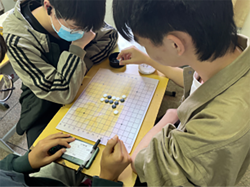 此次比赛的宗旨是“以棋会友,其乐无穷” 。为了比赛的公平性和竞技性,此次比赛采取抽签分组,三局两胜选出晋级选手,再进行决赛。每个星期三下午班会课后开始进行比赛,比赛现场井然有序,气氛欢乐。比赛开始后,棋盘上大家都不谦虚,你来我往,招招逼人,稍有不慎,便会全盘皆输。各参赛选手均全神贯注,力争胜利。黑白棋子之间不断的变换,碰撞出智慧的火花,比赛结束后,大家仍然不忘交流比赛心得,互补长短。