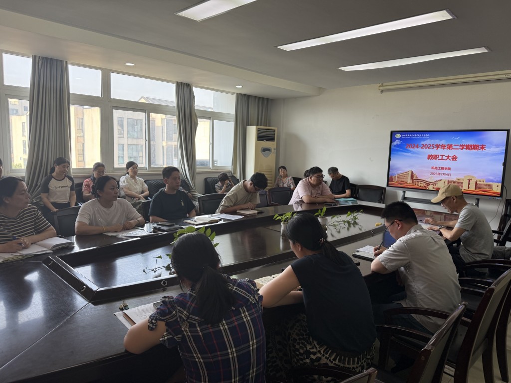 2025年7月4日,机电工程学院召开2024-2025学年第二学期结束大会。学院领导班子、全体教职工出席会议。会议全面总结了2025年上半年工作成果,部署了暑期重点任务,并对下半年工作目标进行了谋划,为学院高质量发展注入新动能。
