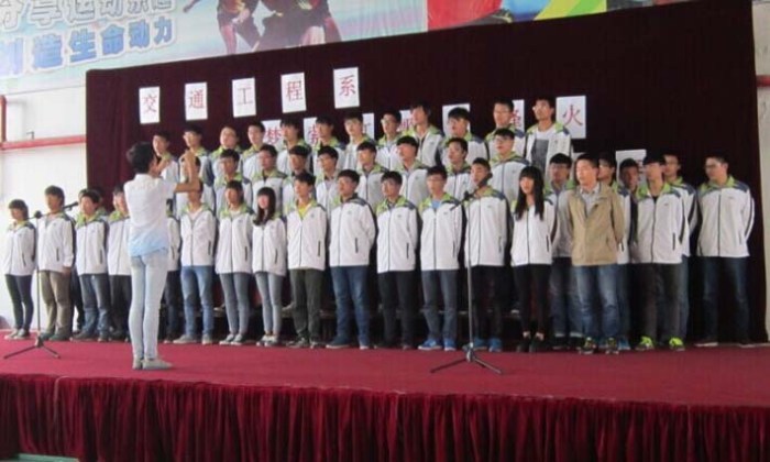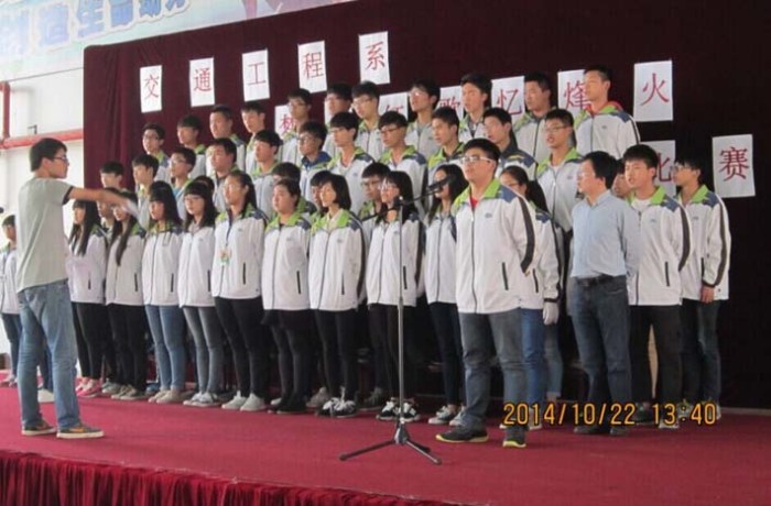 2014年10月22日中午,交通工程系“梦萦红歌忆烽火”大合唱比赛暨“暑期社会实践积极分子”表彰大会在校动感活动中心隆重举行,副校长耿兴华老师,校团委副书记王小明老师,学生处副处长王演新老师,交通工程系主任陈建明老师,副主任邹定南老师,书记毛兰霞老师等观看了合唱比赛。