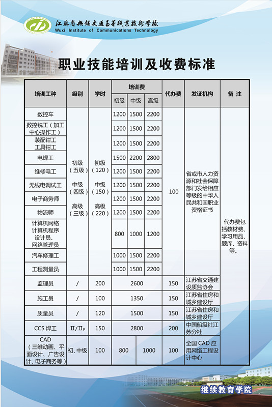 技能培训收费标准