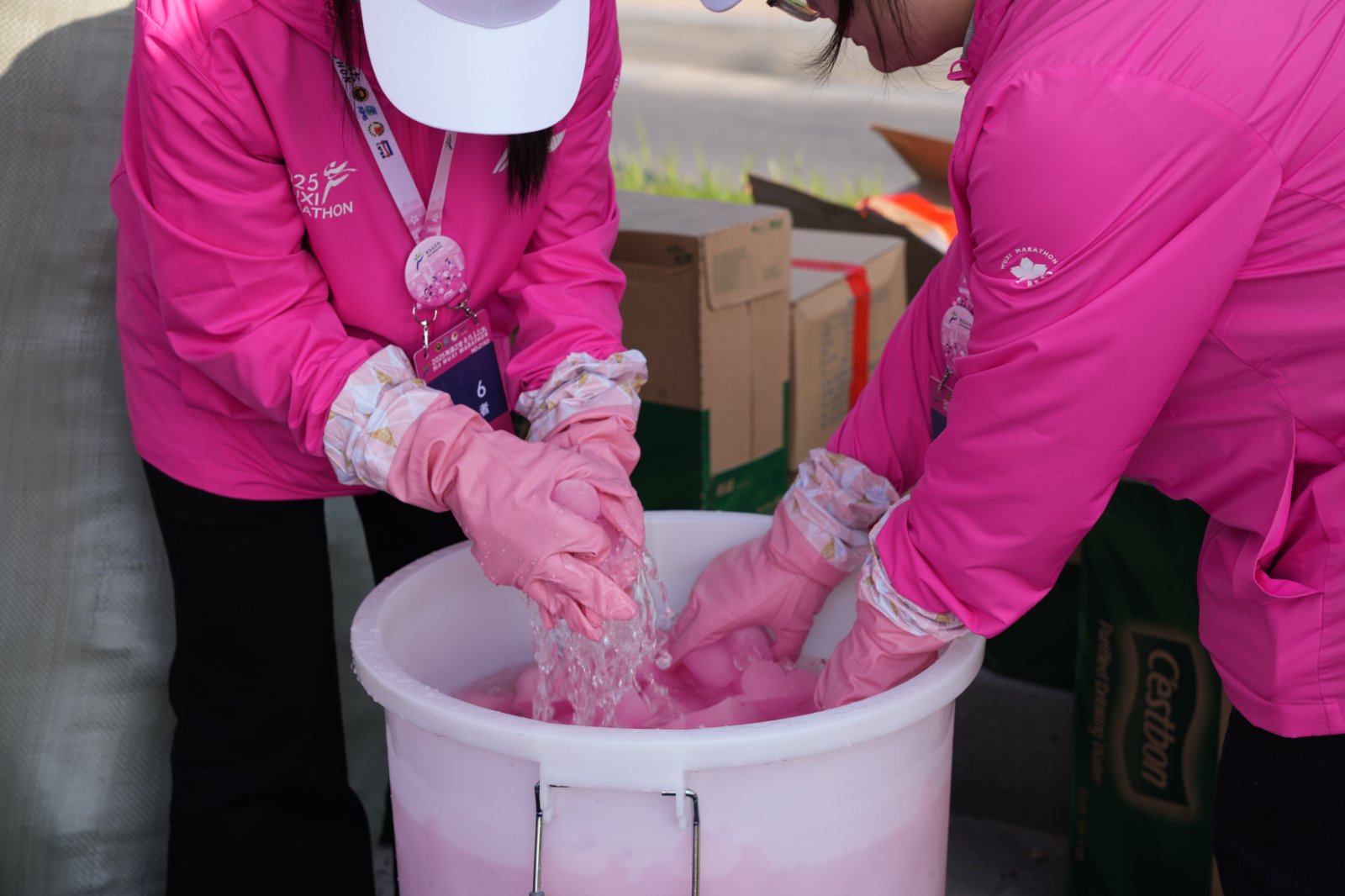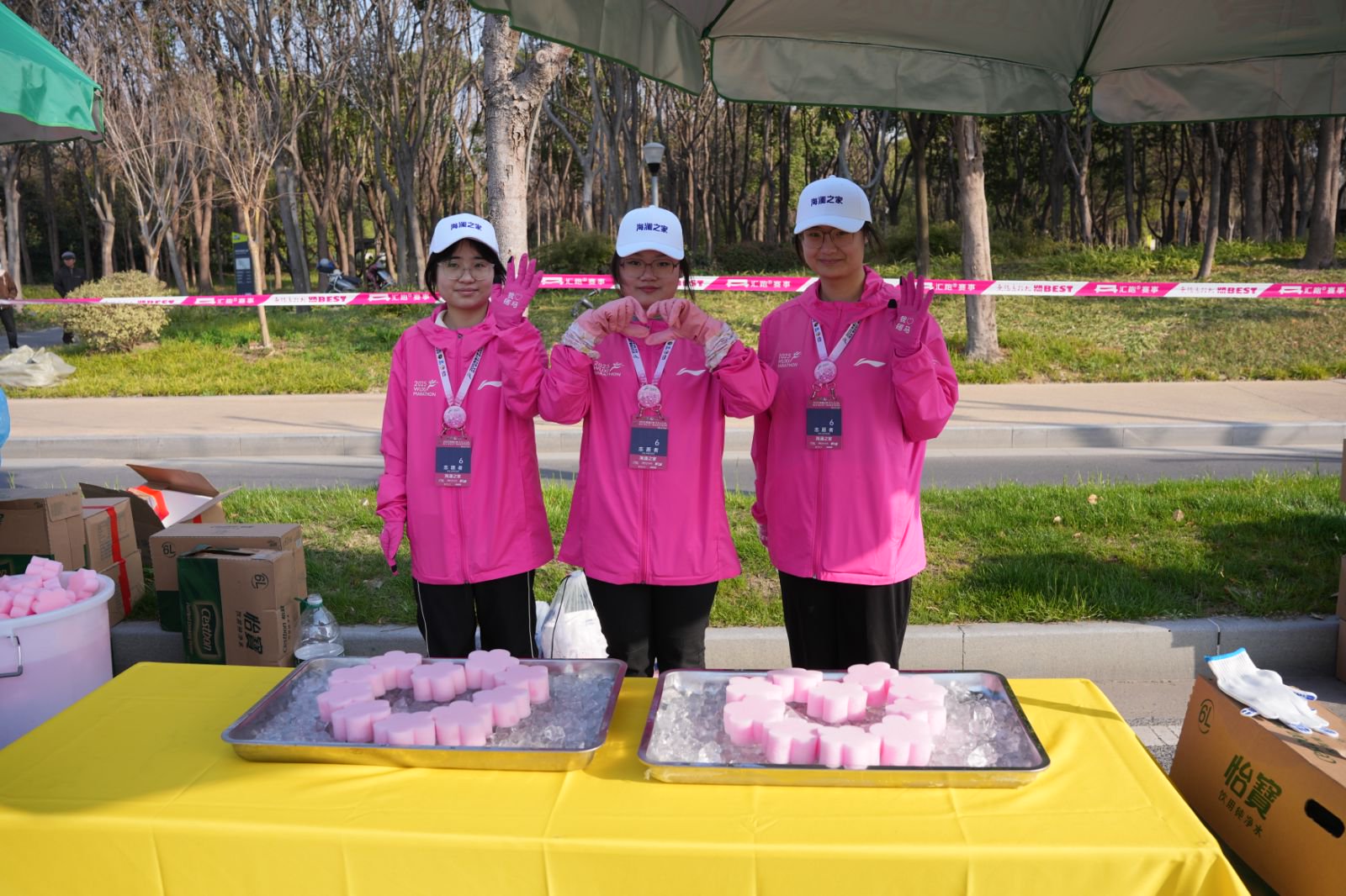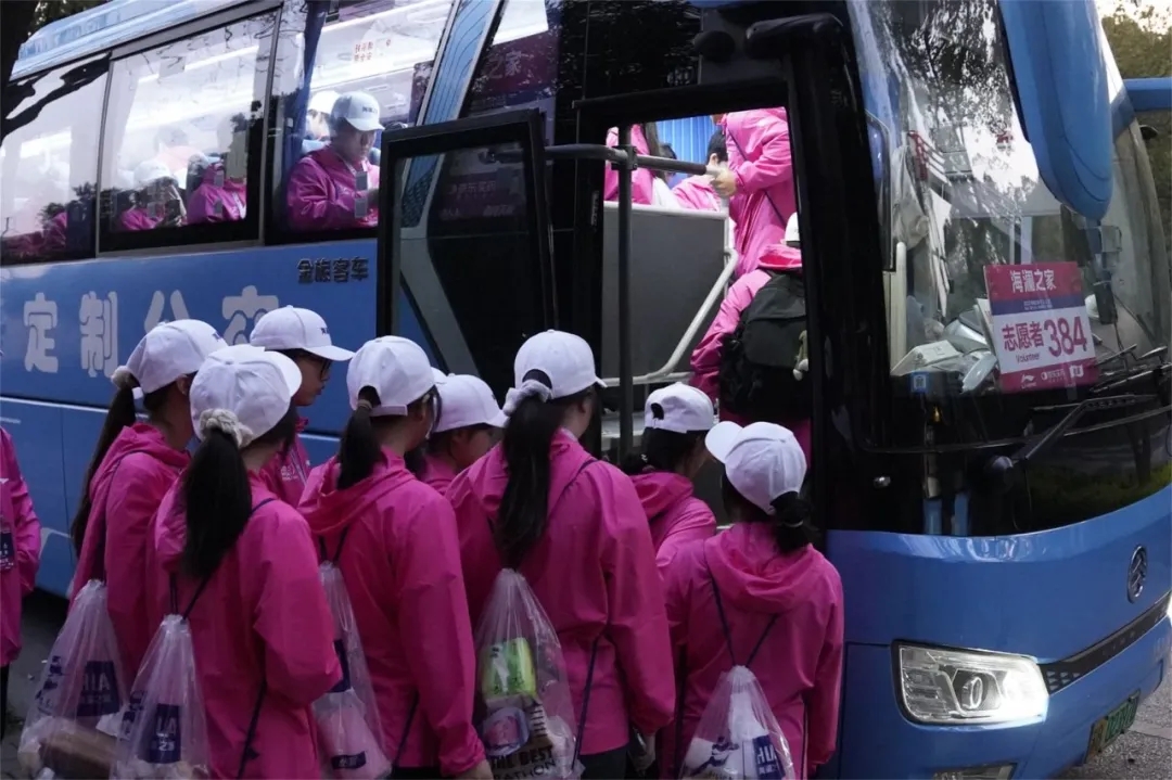 3月23日清晨6点,当城市还未完全“苏醒”,停在无锡交校门口的大巴车外,已聚集了一群身着“樱花粉”的志愿者。420余名马拉松志愿者整装待发,即将前往无锡马拉松保障点位。