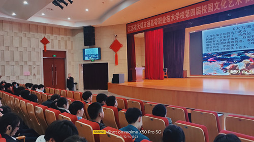 为教育引导团学干部铭记历史,振奋民族精神,加强青年学生的爱国主义教育,12月14日下午,学校邀请了无锡市关工委报告团蒋川海老师,在学校礼堂面向团学干部开展了“铭记历史 开创未来”的主题讲座,全体在校班级班团干部、学生会干部和各社团负责人共200余人参加了此次活动。