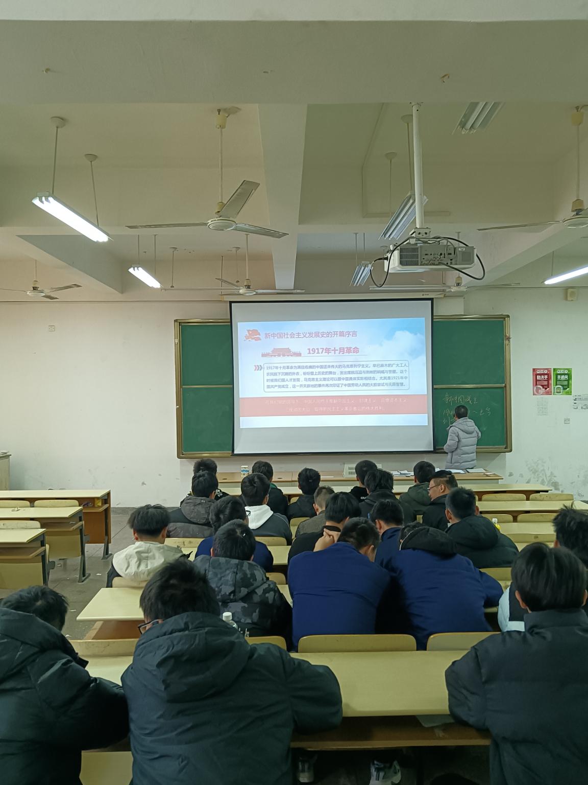 王老师分别从新中国社会主义发展史的开篇序言、篇章基调、曲折探索章节、起承转折段落四个部分来作了详细的讲解,给同学们阐述了中国共产党如何带领中国人民经历了新民主主义革命、社会主义革命、社会主义建设、中国特色社会主义改革开放的艰难曲折时期,从站起来、富起来到强起来的历程。王老师还向学生们讲述了几个红色历史故事,讲述了在这个过程中中国共产党人能够始终不忘初心、牢记使命开辟了一条适合于中国人民的中国特色社会主义道路的丰功伟绩。