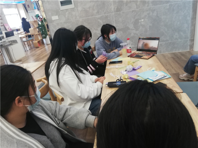 4月5日,数美设计社组织开展“线上祭英烈”活动,并组织学生折手工菊花来表达对英雄们的敬意。