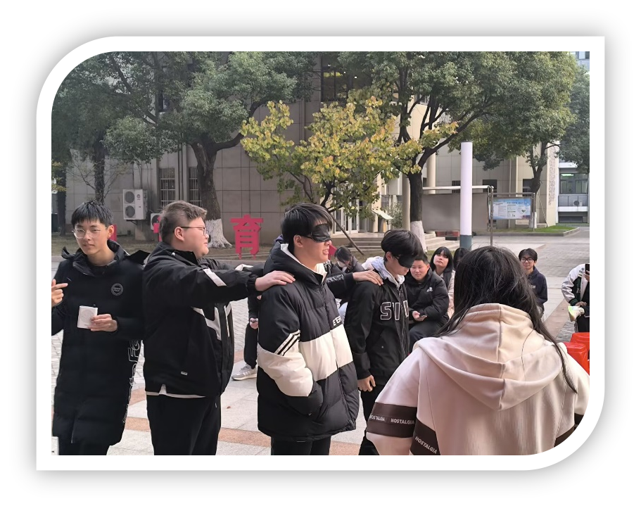 “生命因挫折而精彩----蒙眼前行”游戏,增加同学之间的默契度,以及培养了相互信任,增进友谊。作为建立同学之间情感与友谊的桥梁,有利于创造良好的同学关系。