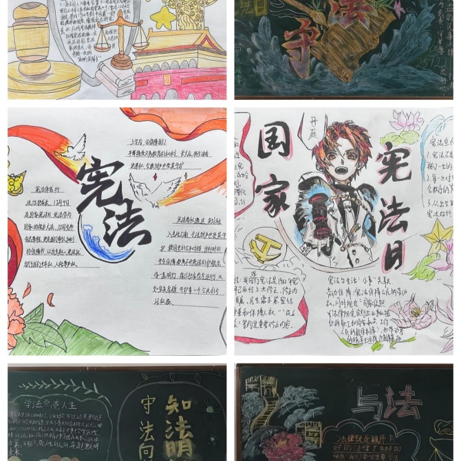 为深入学习宣传宪法知识,弘扬社会主义法治精神,学校还举办了“学宪法、讲宪法、弘扬法治精神”主题黑板报、手抄报比赛。同学们在系统学习宪法知识和法治理念的基础上,热情投入创作,将所学、所思、所悟转化为黑板上、画纸上的生动图文。主题黑板报、手抄报比赛不仅是一次美观的评比,更是一堂生动的法治实践课。此次活动有效激发了学生学习宪法的主动性和自觉性,营造了尊法、学法、守法、用法的浓厚氛围。