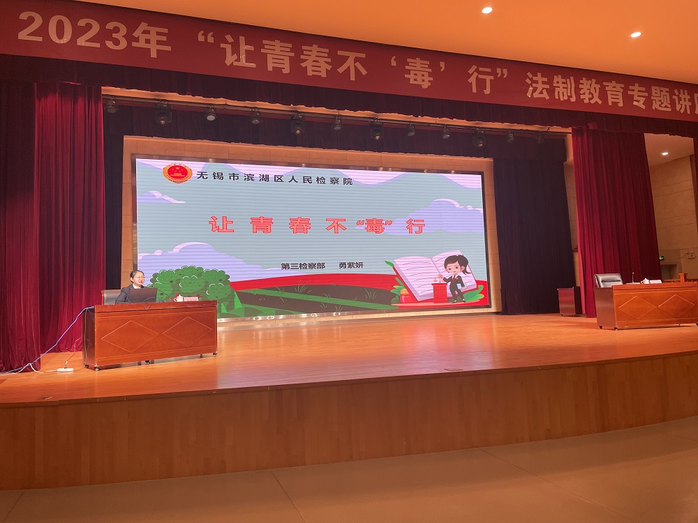 为引导青少年学生养成良好的生活方式,深植“珍爱生命,远离毒品”理念。11月9日下午,学校联合无锡市滨湖区人民检察院在学校大礼堂开展“让青春不‘毒’行”法制教育专题讲座。