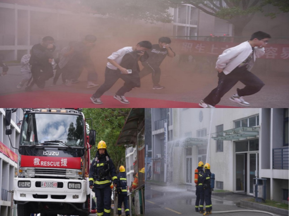 11月14日在安全保卫处的组织下,开展了2024级新生2300名新生进行了消防实操演练。滨湖区应急消防大队出动了三辆消防车协同进行了实战。